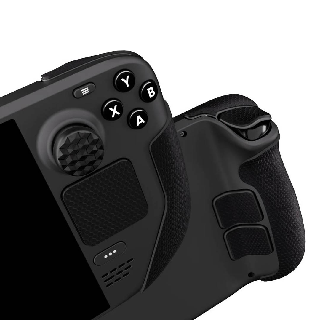 Pads y empuñaduras de goma suave con textura profesional PlayVital para Steam Deck – Negro
